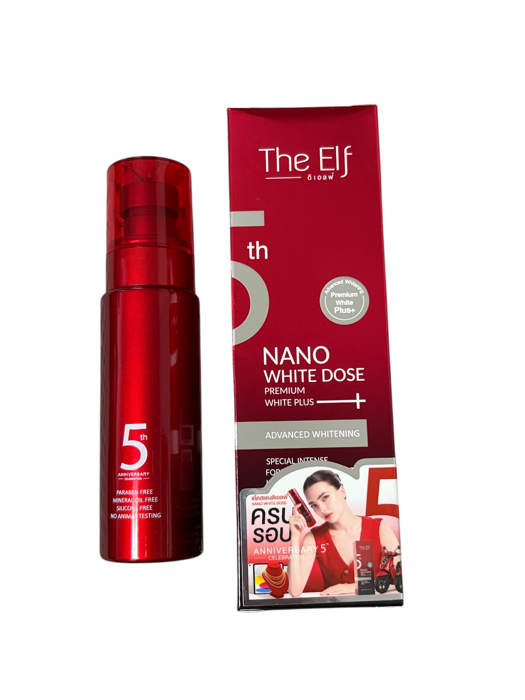 The White Nano White Dose Premium White plus and advance whitening special Intense Formula red extract.